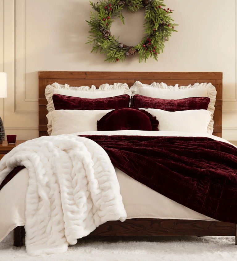 This holiday season, let your bedroom burst with joy and vibrancy by embracing a rainbow of colors that echo the charming whimsy of yesteryears. Instead of the standard bright red and green, transform your space into a kaleidoscope of hues that dance across the walls and furnishings. Think rich cobalt blues, vibrant yellows, lively pinks, and soothing greens blending harmoniously into a festive tapestry that reflects your unique style. Drape colorful garlands along the headboard, hang twinkling lights that shift in a spectrum of colors, and adorn your pillows and blankets with playful patterns that celebrate the holiday spirit in an unconventional way. This decor style, bold and eclectic, invites warmth and nostalgia while creating a cheerful atmosphere that’s truly one-of-a-kind, wrapping you in a cozy embrace of holiday cheer that feels both fresh and familiar.